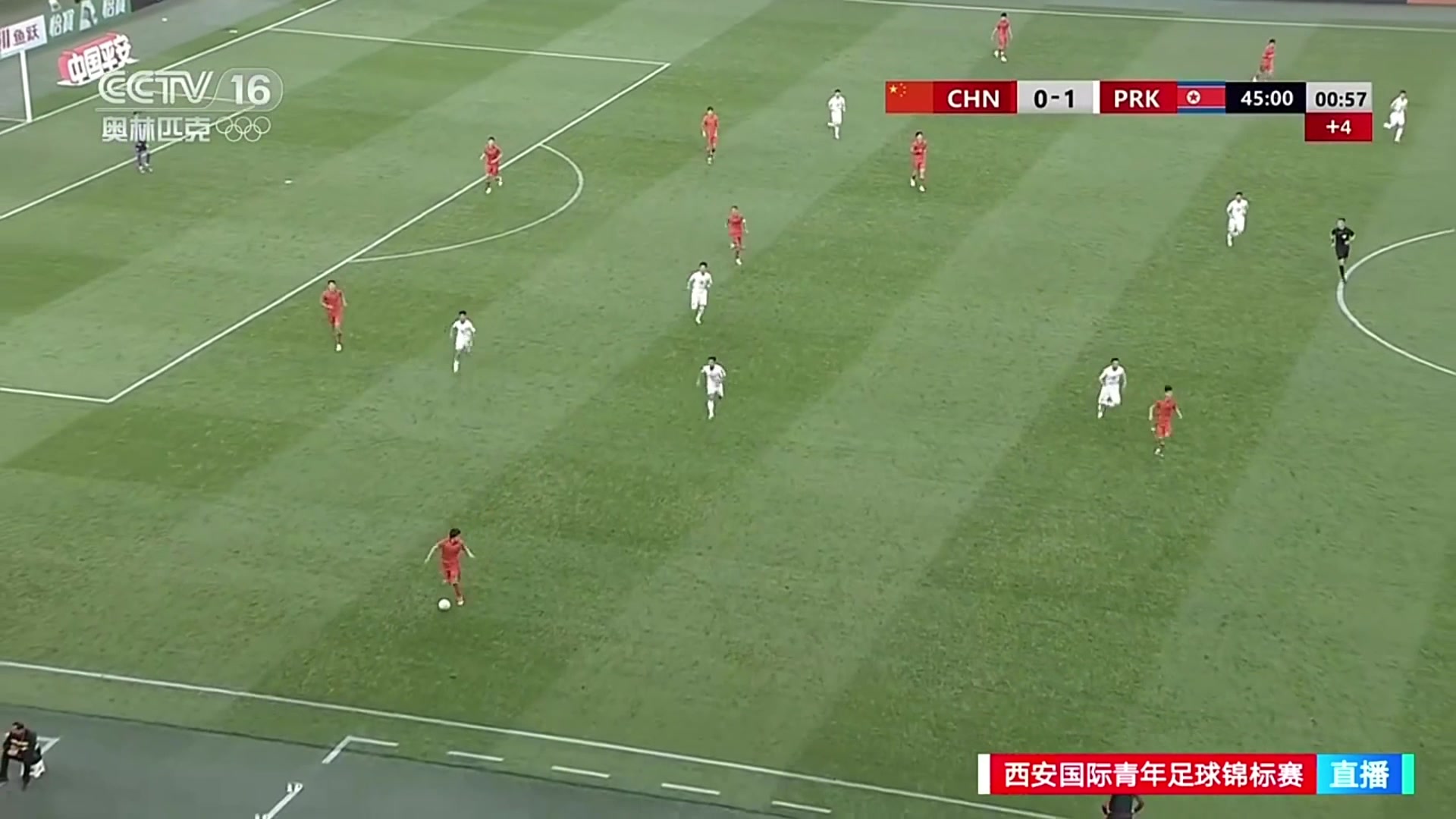 U23国足球员停球3米外随后被朝鲜球员连续一脚传递配合