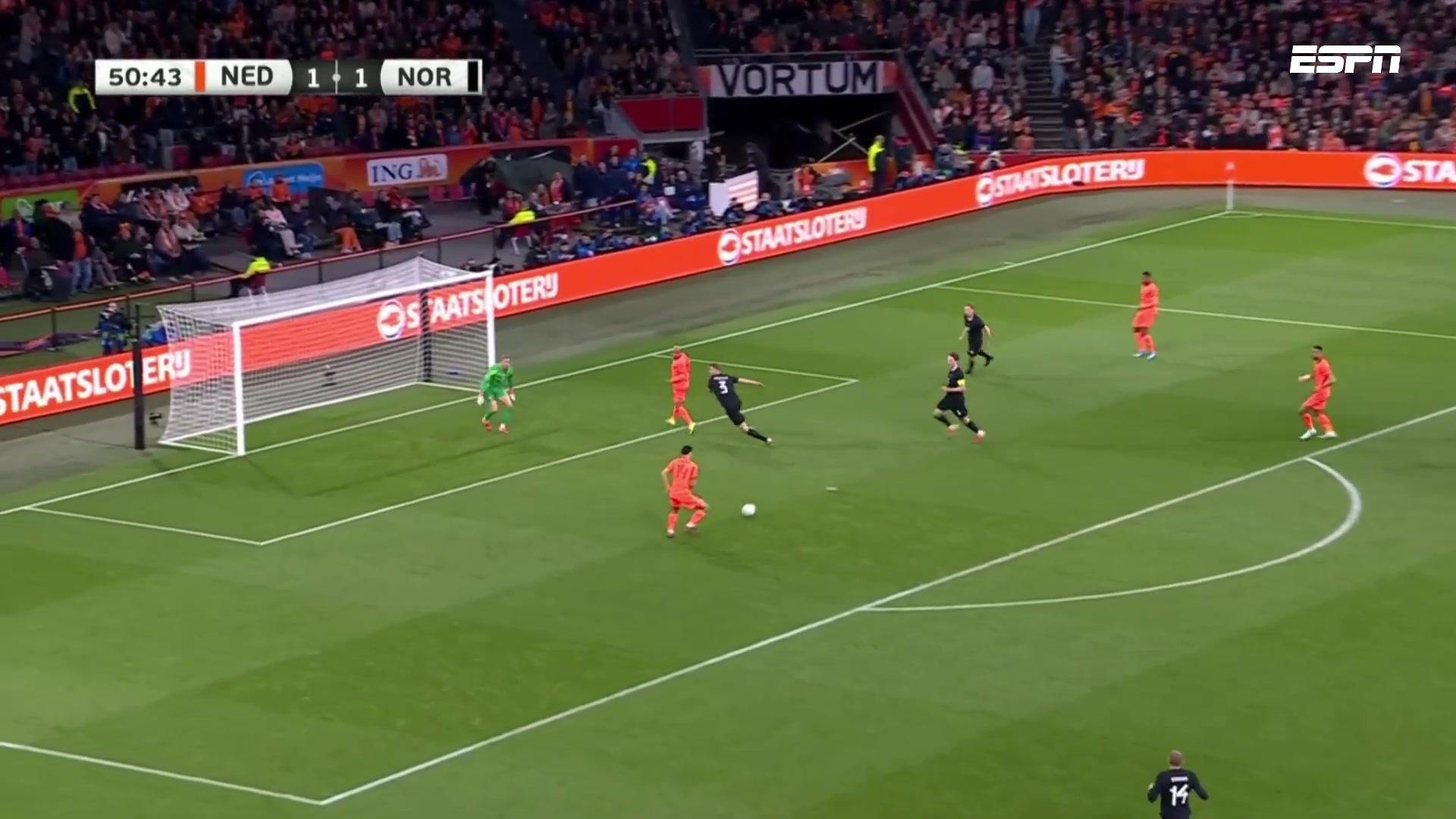 荷兰2-1反超比分邓弗里斯横传赖因德斯无人盯防打门得手