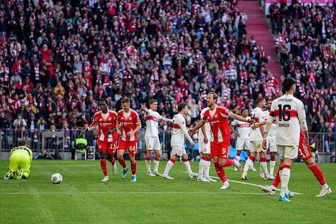 提前4轮德甲夺冠!拜仁4比2逆转斯图加特,迪亚斯助攻双响、凯恩替补建功